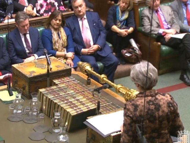 1月21日,在英國(guó)倫敦,英國(guó)首相特雷莎·梅(前)在議會(huì)下院講話。(新華/美聯(lián))