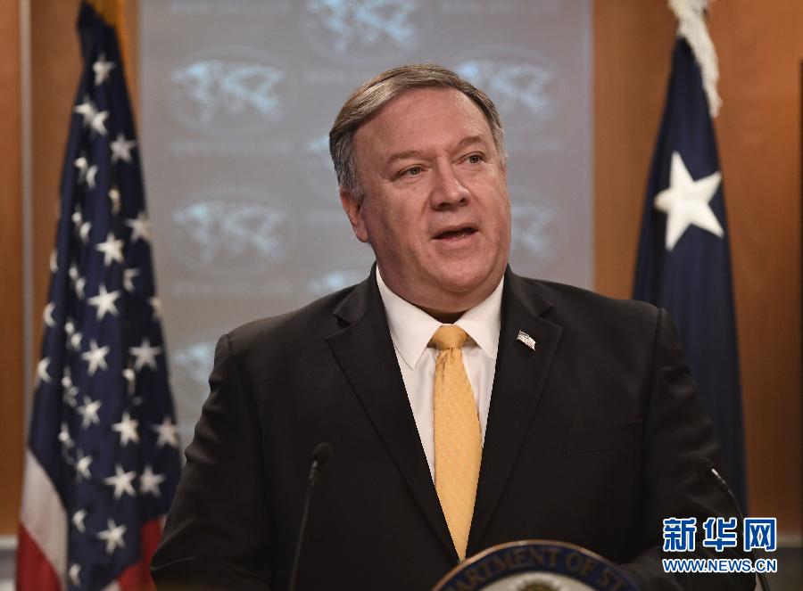 2月1日,在美國華盛頓,美國國務(wù)卿蓬佩奧在國務(wù)院記者會上講話。 新華社記者 劉杰 攝