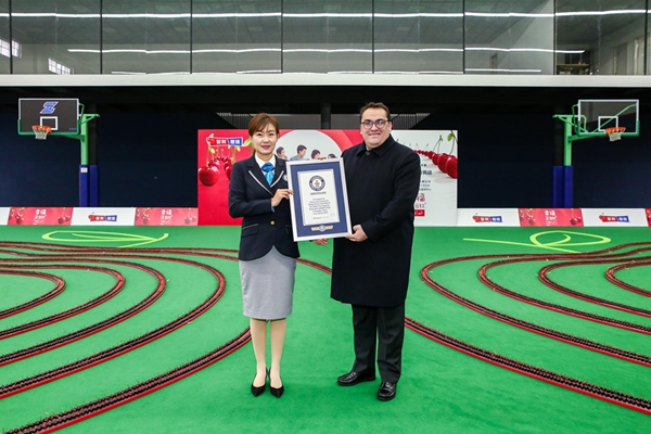 2019年1月9日,來自智利的24638個深紅色大櫻桃,漂洋過海來到中國上海,通過排列,組成了兩顆手牽手櫻桃的巨大圖案,創(chuàng)造了“最長的水果隊列”吉尼斯世界紀(jì)錄稱號。
