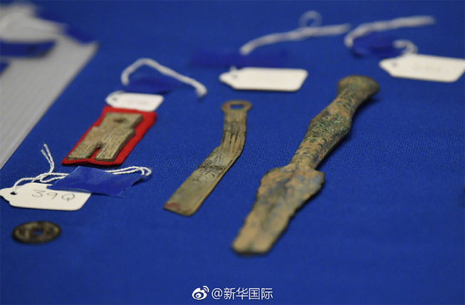 此次返還的中國(guó)流失文物藝術(shù)品時(shí)間跨度長(zhǎng),從新石器時(shí)代直至清代,涉及石器、玉器、青銅器、陶器、錢(qián)幣、木雕建筑構(gòu)件等多個(gè)門(mén)類,多為中國(guó)古代墓葬隨葬器物。當(dāng)天儀式現(xiàn)場(chǎng)展示了其中20余件(套)文物。