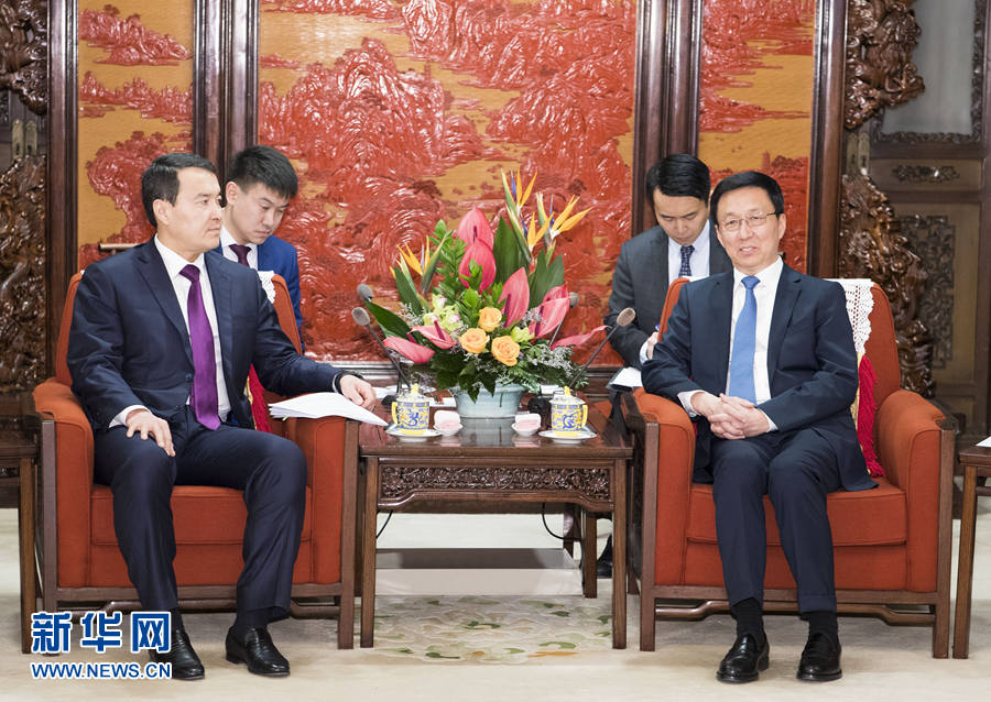 韓正表示,中哈是友好鄰邦和全面戰(zhàn)略伙伴。在習(xí)近平主席和納扎爾巴耶夫總統(tǒng)的戰(zhàn)略引領(lǐng)和親自推動(dòng)下,中哈關(guān)系保持高水平運(yùn)行,已成為國與國之間和睦相處、互利共贏的典范。雙方高層交往密切,政治互信不斷增強(qiáng),共建“一帶一路”成果豐碩。希望雙方進(jìn)一步發(fā)揮好中哈合作委員會(huì)重要作用,加強(qiáng)發(fā)展戰(zhàn)略對接,推進(jìn)經(jīng)貿(mào)、投資、海關(guān)、金融等領(lǐng)域務(wù)實(shí)合作,支持兩國企業(yè)按商業(yè)化市場化原則加強(qiáng)項(xiàng)目合作,推動(dòng)中哈合作不斷取得新進(jìn)展。