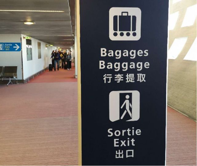 戴高樂國際機(jī)場(chǎng)內(nèi)的中文提示語。新華社記者 孫浩 攝