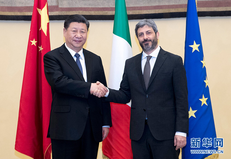 3月22日,國(guó)家主席習(xí)近平在羅馬會(huì)見意大利眾議長(zhǎng)菲科。(新華社記者王曄攝)