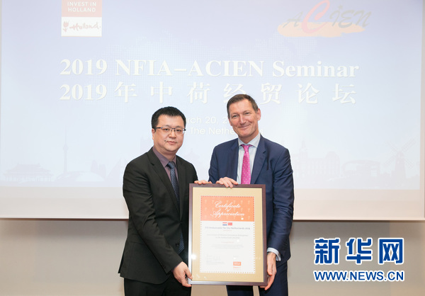 ? 新華網海牙3月25日電(姜慧)荷蘭國家外商投資局近日舉辦“2019年中荷經貿論壇”,并在活動上向全荷蘭中資企業(yè)協(xié)會頒發(fā)“經貿使者獎”,以表彰該協(xié)會所代表的中資企業(yè)在荷蘭的成功投資和對荷蘭投資環(huán)境的認可,以及為荷蘭經濟作出的寶貴貢獻。