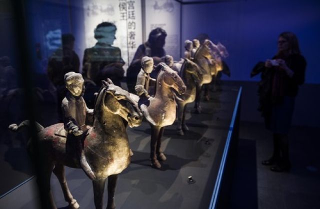 2014年10月21日,在法國巴黎,觀眾在“漢風-中國漢代文物展”上參觀。新華社記者陳曉偉攝