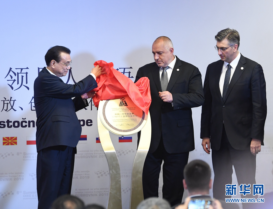 新華社克羅地亞杜布羅夫尼克4月12日電(記者史霄萌 高磊)當?shù)貢r間4月12日下午,國務院總理李克強在杜布羅夫尼克出席第八次中國-中東歐國家領(lǐng)導人會晤后,與保加利亞總理鮑里索夫、克羅地亞總理普連科維奇共同為“16+1全球伙伴中心”揭牌,宣布“16+1全球伙伴中心”正式成立。