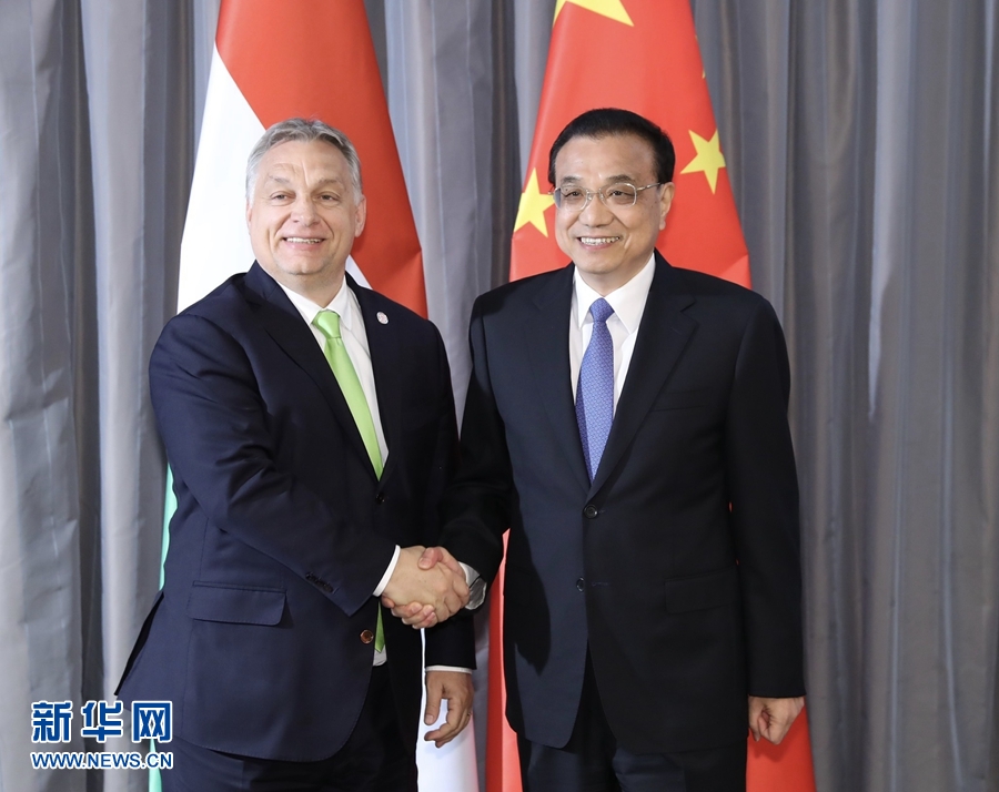 當?shù)貢r間4月12日下午,國務(wù)院總理李克強在杜布羅夫尼克會見匈牙利總理歐爾班。新華社記者 黃敬文 攝