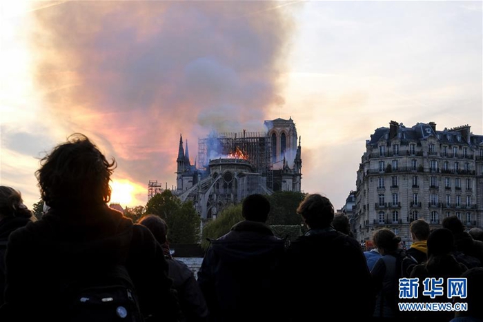 火災(zāi)現(xiàn)場(chǎng),有著800多年歷史的教堂被火光和濃煙籠罩。哥特式塔尖傾斜倒塌,成千上萬的民眾站在河對(duì)岸或者通過電視直播目睹了這一幕。所有人表情凝重,很多人淚流滿面。