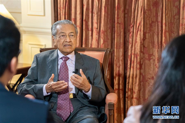 4月8日,馬來(lái)西亞總理馬哈蒂爾在普特拉賈亞接受中國(guó)媒體聯(lián)合采訪。新華社記者 朱煒 攝