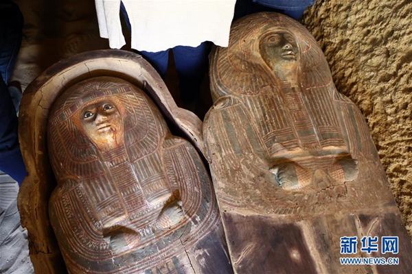 吉薩高地總干事阿什拉夫·穆希介紹說,該墓地在古埃及后期(公元前712年至前323年)被多次重復使用,考古隊在該墓地中發(fā)掘出多座古埃及后期的木質棺槨和一些喪葬用木質及石質面具,很多還保存有顏色。