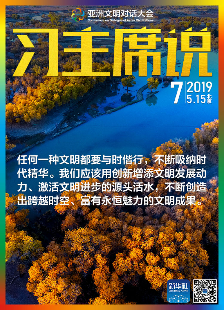 任何一種文明都要與時偕行,不斷吸納時代精華。我們應(yīng)該用創(chuàng)新增添文明發(fā)展動力、激活文明進步的源頭活水,不斷創(chuàng)造出跨越時空、富有永恒魅力的文明成果。