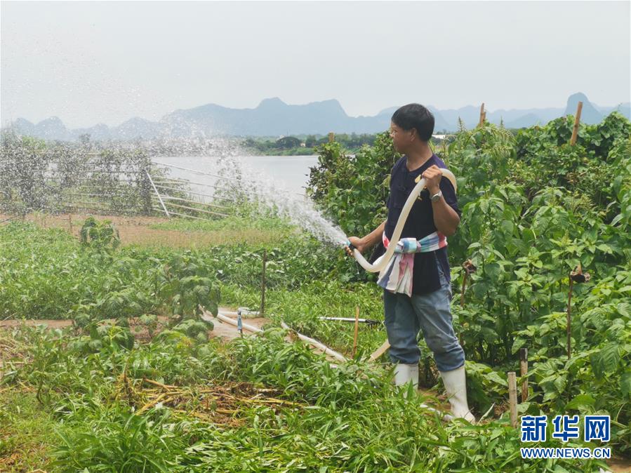 5月8日,在泰國那空拍儂府,那龍猜在湄公河畔自家農(nóng)田里澆水。58歲的那龍猜是泰國那空拍儂府湄公河游船上的志愿解說員。新華社記者郭鑫惠攝