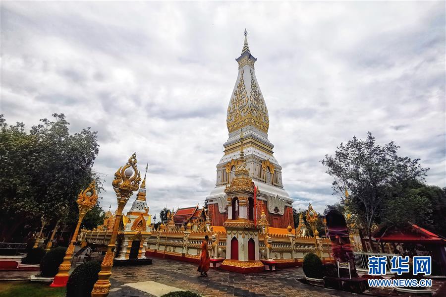 這是5月9日在泰國那空拍儂府拍攝的老撾風(fēng)格的巴儂舍利塔。新華社記者郭鑫惠攝