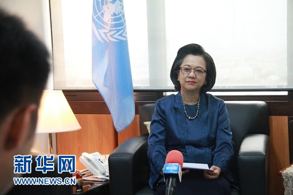 5月14日,聯(lián)合國亞洲及太平洋經(jīng)濟社會委員會執(zhí)行秘書阿米達·阿利斯夏巴納在泰國曼谷接受新華社記者采訪。 聯(lián)合國亞洲及太平洋經(jīng)濟社會委員會執(zhí)行秘書阿米達·阿利斯夏巴納日前在曼谷接受新華社記者采訪時說,70年來中國取得了全方位的發(fā)展成就,并給亞太地區(qū)帶來積極影響。 新華社發(fā)