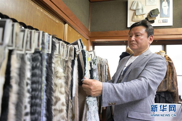 這是5月17日在日本和歌山縣,岡田織物現(xiàn)任社長岡田次弘挑選人造毛皮產(chǎn)品。新華社記者 杜瀟逸 攝