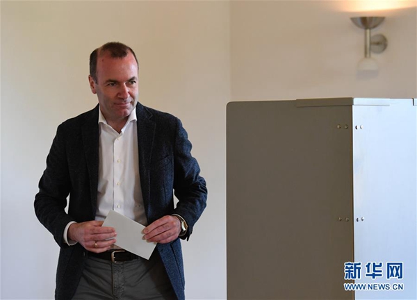 5月26日,在德國維爾登貝格,歐洲人民黨歐盟委員會主席候選人曼弗雷德·韋伯在一處投票站準(zhǔn)備投票。新華社記者 逯陽 攝