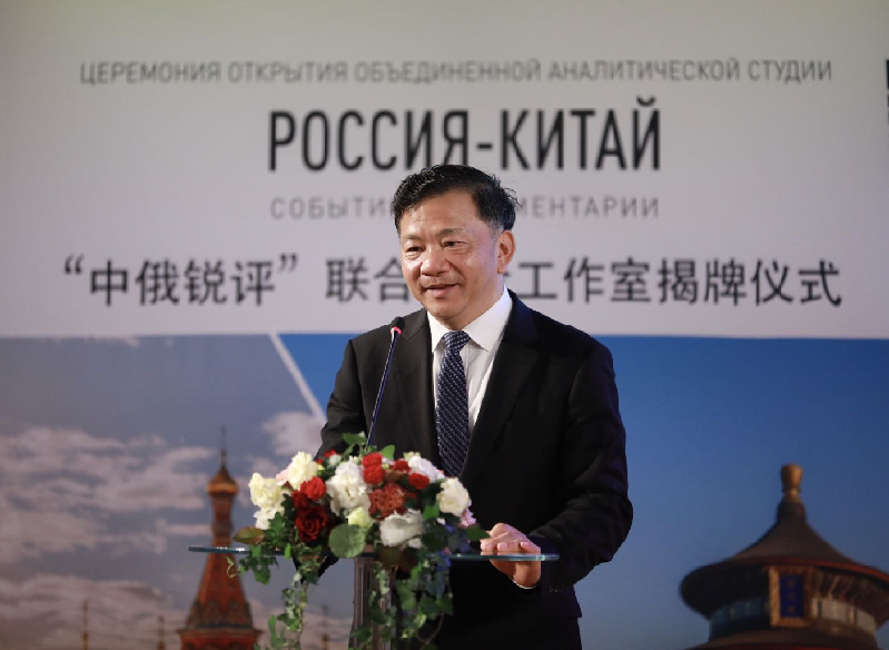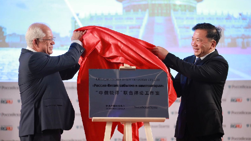 6月5日,由中央廣播電視總臺與俄羅斯政府機關(guān)報《俄羅斯報》共同打造的“中俄銳評”聯(lián)合評論工作室揭牌儀式在莫斯科舉行。中宣部副部長、中央廣播電視總臺臺長慎海雄,俄羅斯報社長涅戈伊察出席儀式,并共同為“中俄銳評”聯(lián)合評論工作室揭牌。
