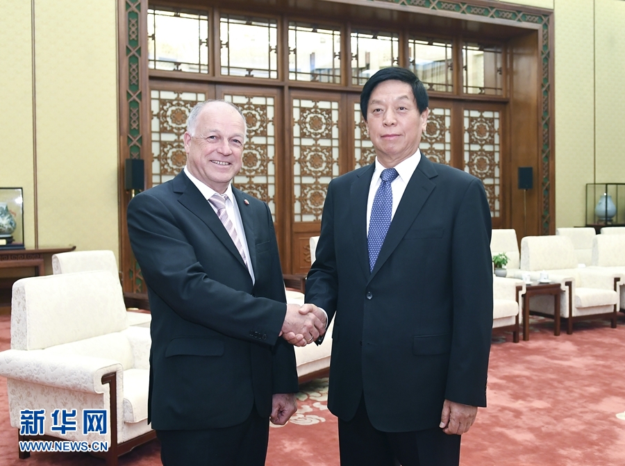 6月10日,全國人大常委會(huì)委員長栗戰(zhàn)書在北京會(huì)見以奧地利聯(lián)邦議會(huì)議長英戈·阿佩為團(tuán)長的奧中友協(xié)高級(jí)代表團(tuán)。 新華社記者 燕雁 攝