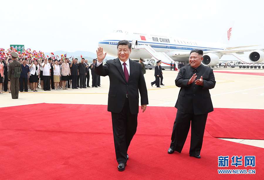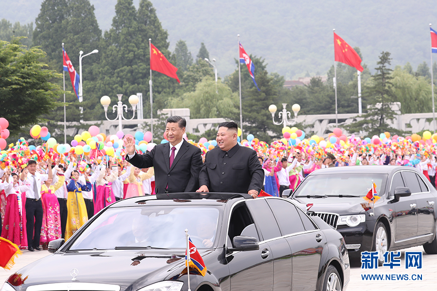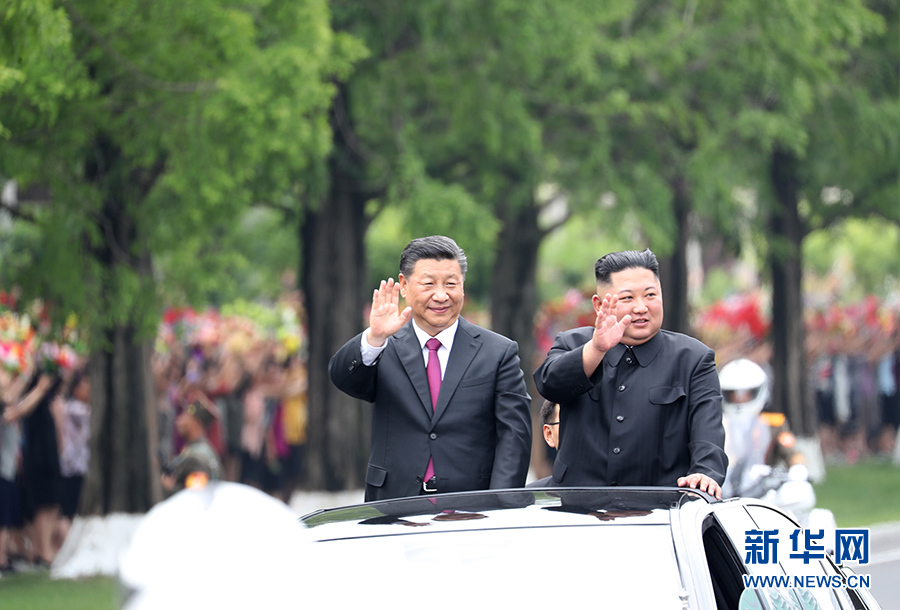 6月20日,中共中央總書記、國家主席習(xí)近平乘專機(jī)抵達(dá)平壤,開始對朝鮮民主主義人民共和國進(jìn)行國事訪問。朝鮮勞動(dòng)黨委員長、國務(wù)委員會(huì)委員長金正恩和夫人李雪主到機(jī)場熱情迎接習(xí)近平和夫人彭麗媛。朝方在機(jī)場舉行隆重歡迎儀式。歡迎儀式結(jié)束后,習(xí)近平與金正恩同車前往錦繡山太陽宮廣場,沿途數(shù)十萬群眾夾道歡迎。 新華社記者 申宏 攝