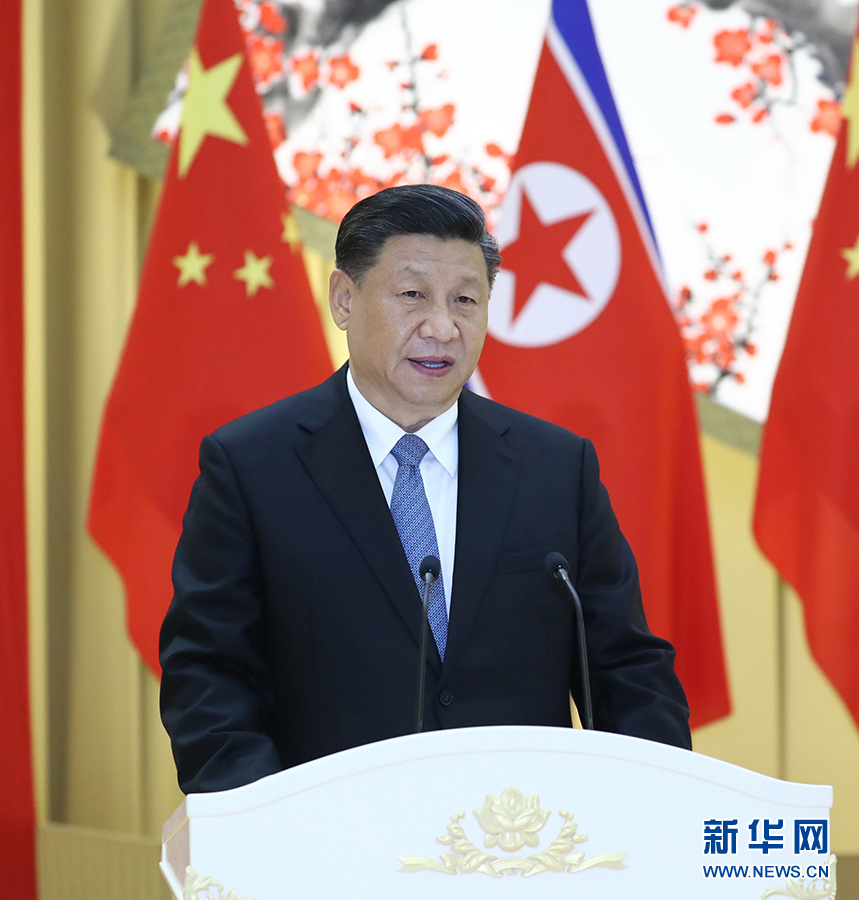 6月20日,中共中央總書記、國家主席習(xí)近平出席朝鮮勞動黨委員長、國務(wù)委員會委員長金正恩在平壤木蘭館舉行的歡迎宴會。這是習(xí)近平在宴會上致辭。 新華社記者 鞠鵬 攝