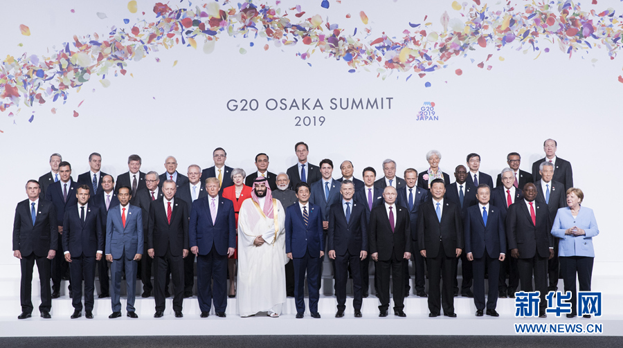 6月28日,二十國集團領(lǐng)導(dǎo)人第十四次峰會在日本大阪舉行。國家主席習近平出席并發(fā)表題為《攜手共進,合力打造高質(zhì)量世界經(jīng)濟》的重要講話。這是習近平同其他與會領(lǐng)導(dǎo)人合影。新華社記者 黃敬文 攝