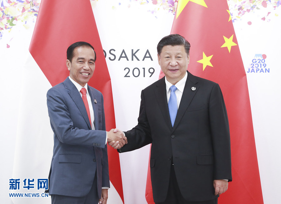 6月28日,國家主席習(xí)近平在大阪會見印度尼西亞總統(tǒng)佐科。 新華社記者 龐興雷 攝