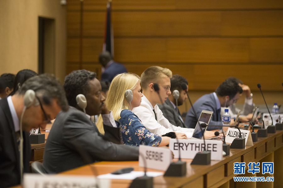 7月9日,在瑞士日內(nèi)瓦聯(lián)合國萬國宮,與會嘉賓出席“發(fā)展對享有所有人權(quán)的貢獻”主題邊會。新華社記者 徐金泉 攝
