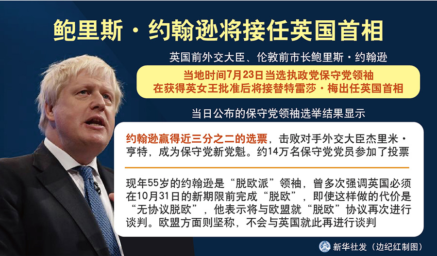 新華社倫敦7月23日電(記者桂濤 楊曉靜)英國前外交大臣、倫敦前市長鮑里斯·約翰遜23日當選執(zhí)政黨保守黨領袖,在獲得女王伊麗莎白二世批準后將接任英國首相。