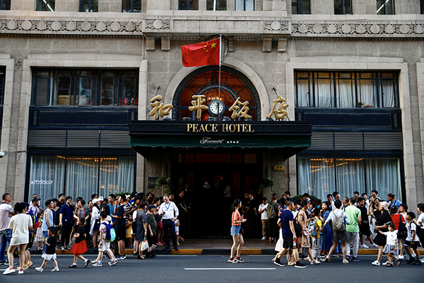 夜幕降臨,在燈光的輝映下,和平飯店更顯滄桑與榮耀。這座已有90年歷史的飯店曾經(jīng)見證過許多中美兩國交往的重要場景,不僅老布什、克林頓、奧巴馬等多位美國前政要曾來過這里,1971年美國乒乓代表團訪問中國時,也曾住在這里。