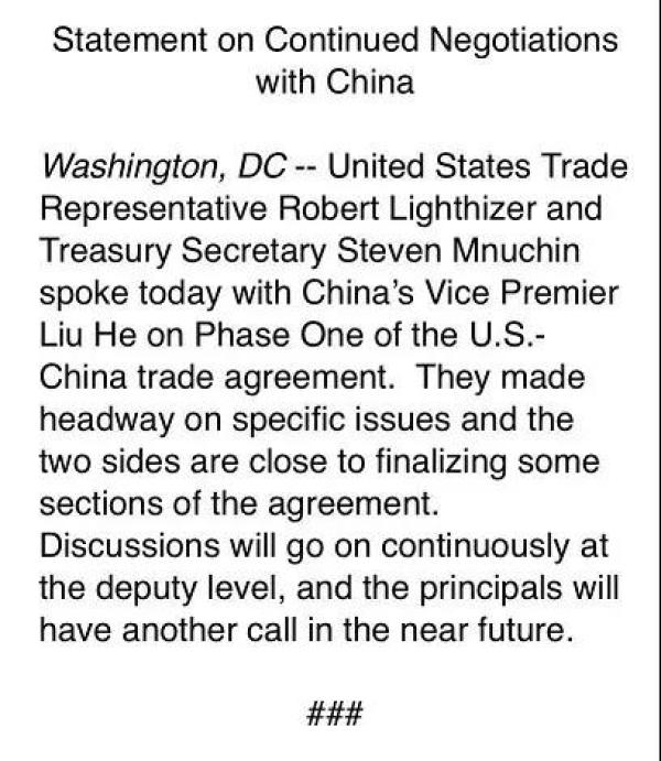 聲明中說(shuō),“他們?cè)诰唧w問(wèn)題上取得了進(jìn)展,雙方接近敲定協(xié)議的某些部分”,“雙方將繼續(xù)副部級(jí)層級(jí)的討論,高級(jí)別官員將在不久舉行再次通話(huà)。”