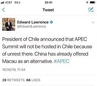 (智利總統(tǒng)宣布因?yàn)轵}亂不在智利舉辦APEC峰會,中國提議澳門作為備選)