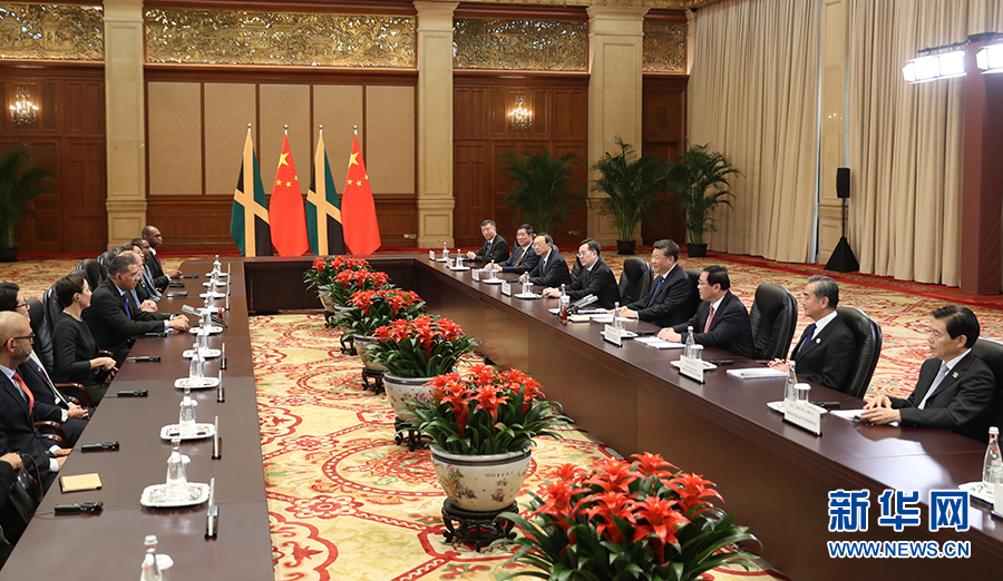 習(xí)近平強(qiáng)調(diào),中牙雙方要保持高層交往,加強(qiáng)治國(guó)理政經(jīng)驗(yàn)交流,加強(qiáng)發(fā)展戰(zhàn)略對(duì)接,以共建“一帶一路”為契機(jī),推動(dòng)合作增速提質(zhì),密切人文交流。中方支持中國(guó)企業(yè)赴牙買加投資,歡迎更多牙買加特色優(yōu)勢(shì)產(chǎn)品進(jìn)入中國(guó)。中方愿同牙方一道,致力于推動(dòng)中國(guó)同加勒比國(guó)家關(guān)系發(fā)展,并加強(qiáng)在國(guó)際和多邊領(lǐng)域合作,共同維護(hù)多邊主義和多邊貿(mào)易體制,捍衛(wèi)發(fā)展中國(guó)家共同利益。