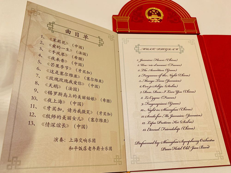 晚宴上,來(lái)自上海交響樂(lè)團(tuán)、和平飯店老年爵士樂(lè)團(tuán)的樂(lè)手們,演奏了中國(guó)、法國(guó)、希臘、牙買(mǎi)加、塞爾維亞的13首名曲,讓各國(guó)客人賓至如歸。