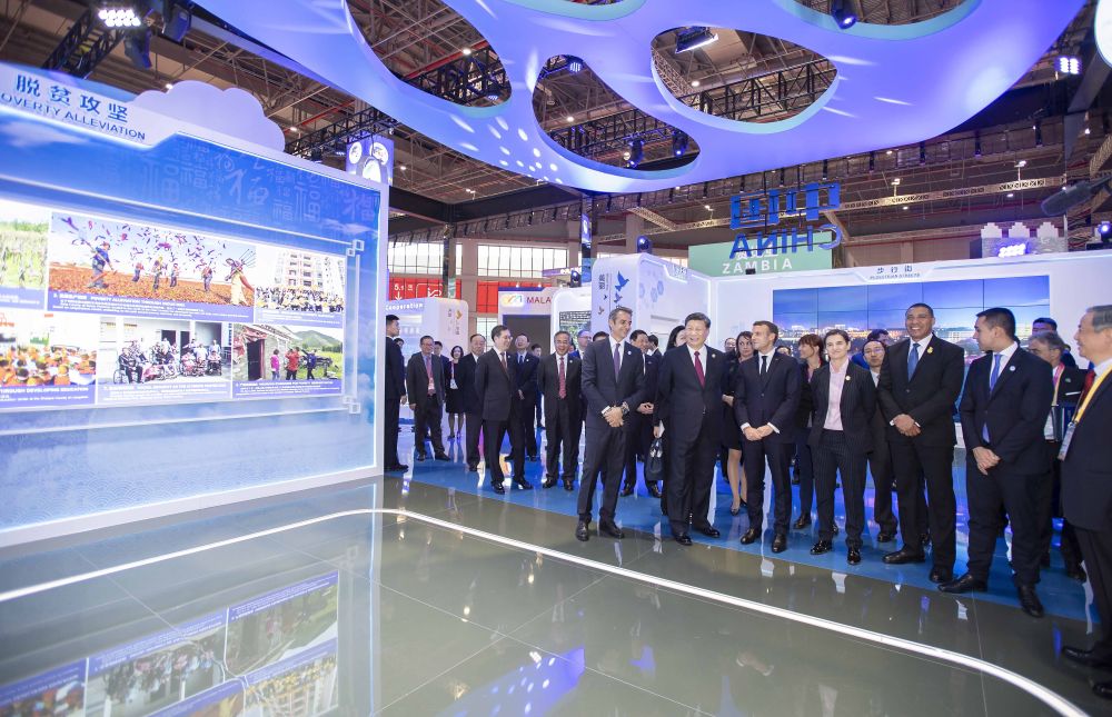 開幕式后,習(xí)近平主席和與會(huì)外國(guó)領(lǐng)導(dǎo)人共同巡館。
