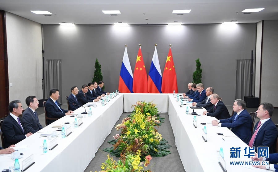當(dāng)?shù)貢r(shí)間11月13日,國(guó)家主席習(xí)近平在巴西利亞會(huì)見(jiàn)俄羅斯總統(tǒng)普京。新華社記者 龐興雷 攝