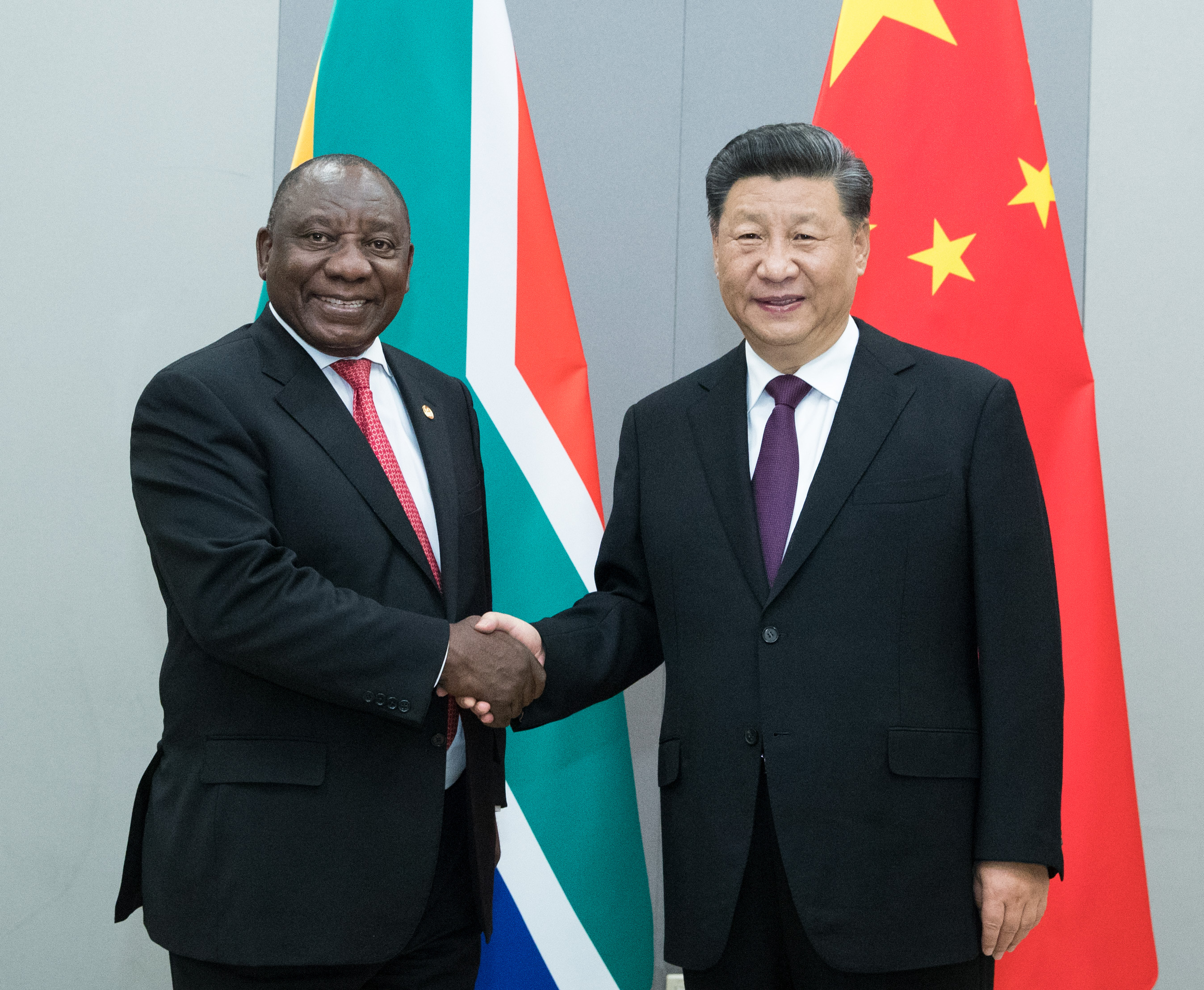 ▲當地時間11月14日,國家主席習近平在巴西利亞會見南非總統(tǒng)拉馬福薩。新華社記者王曄攝