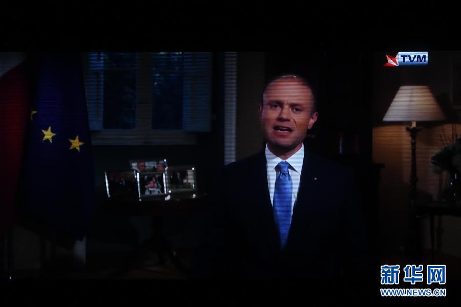 ??? 這是12月1日在馬耳他瓦萊塔拍攝的馬耳他總理穆斯卡特通過國家電視臺發(fā)表講話的電視畫面。 新華社發(fā)(喬納森·博格攝)