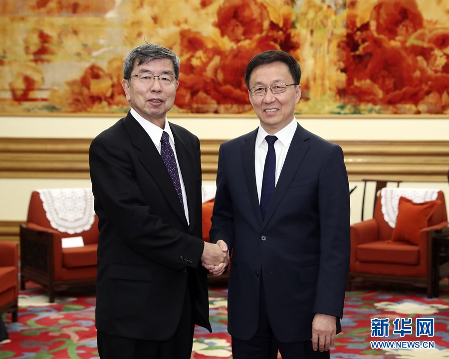 12月3日,中共中央政治局常委、國務(wù)院副總理韓正在北京中南海會見亞洲開發(fā)銀行行長中尾武彥。新華社記者 丁林 攝