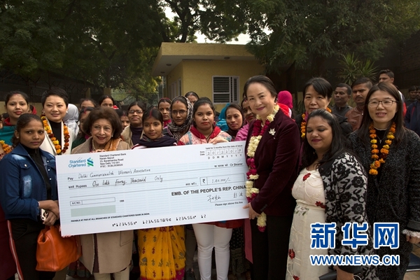 中國(guó)駐印度大使館婦女小組向德里英聯(lián)邦婦女協(xié)會(huì)捐贈(zèng)善款現(xiàn)場(chǎng)。賈維德·達(dá)爾 攝