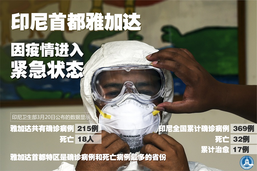 印尼衛(wèi)生部20日公布的數(shù)據顯示,雅加達首都特區(qū)是確診病例和死亡病例最多的省份,目前雅加達共有確診病例215例,死亡18人。印尼全國累計確診病例369例,死亡32例,累計治愈17例。