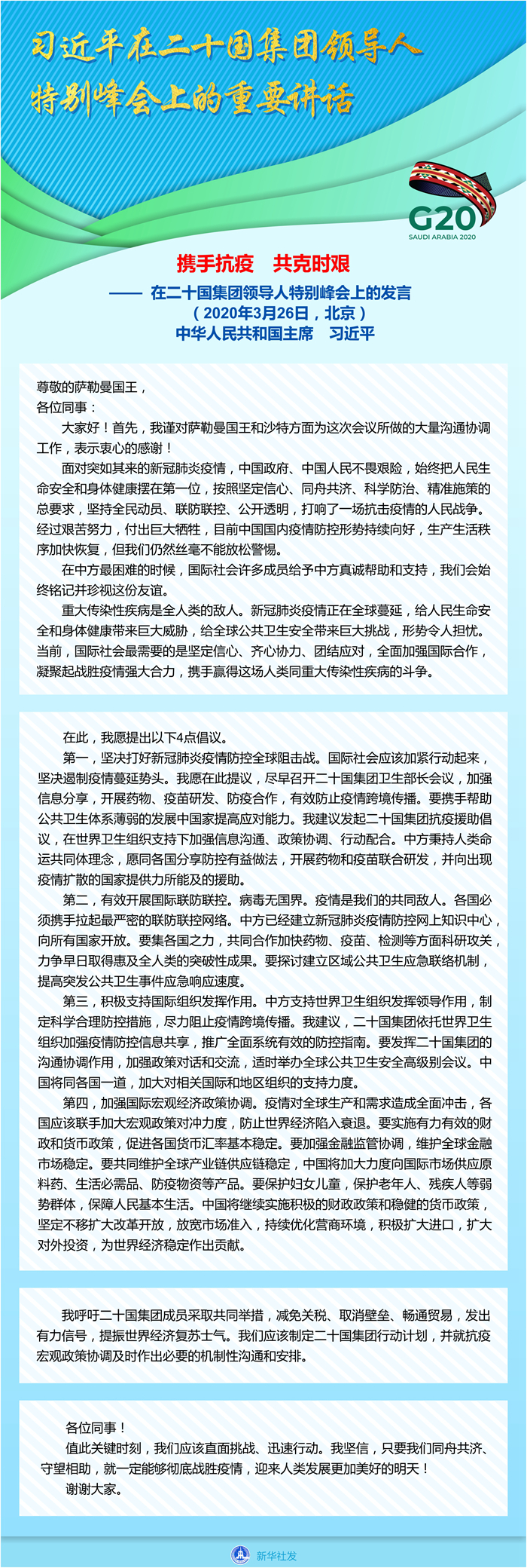 習(xí)近平在二十國(guó)集團(tuán)領(lǐng)導(dǎo)人特別峰會(huì)上的重要講話(全文)