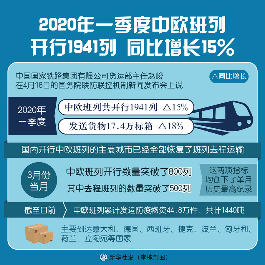 疫情之下,中歐班列成為防疫物資運(yùn)輸?shù)闹匾锪魍ǖ?。?jù)趙峻介紹,截至目前,中歐班列累計(jì)發(fā)運(yùn)防疫物資44.8萬件、共計(jì)1440噸,主要到達(dá)意大利、德國、西班牙、捷克、波蘭、匈牙利、荷蘭、立陶宛等國家,并以這些國家為節(jié)點(diǎn),分撥到更多的歐洲國家,有力促進(jìn)了國際防疫合作。