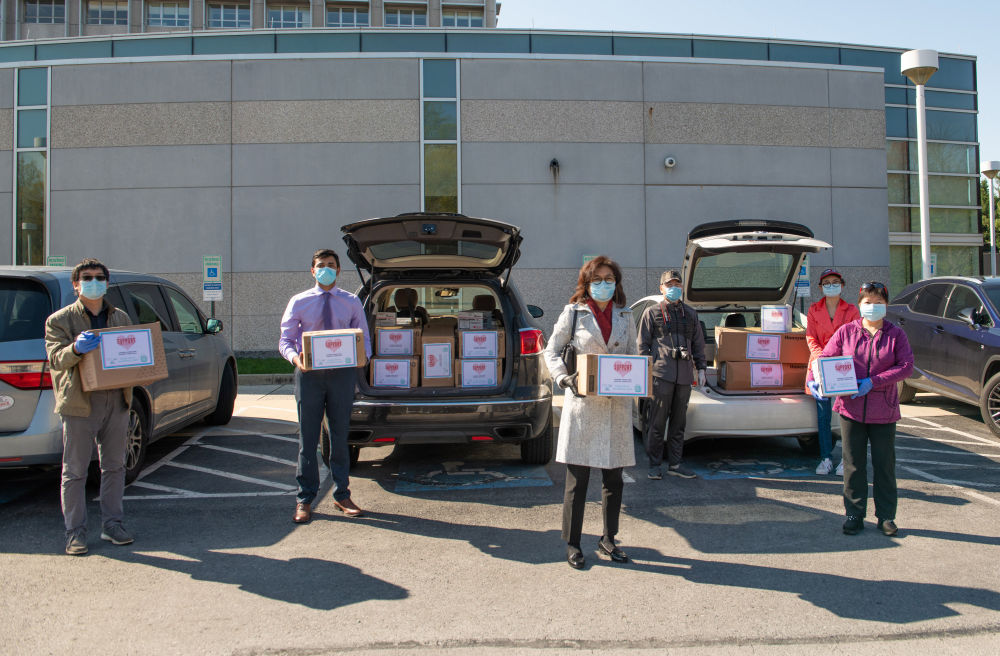 2020年4月6日,在美國(guó)馬里蘭州貝塞斯達(dá),“華人支援醫(yī)院”的成員準(zhǔn)備將一批醫(yī)療物資捐獻(xiàn)給當(dāng)?shù)匾患裔t(yī)院。(新華社發(fā))