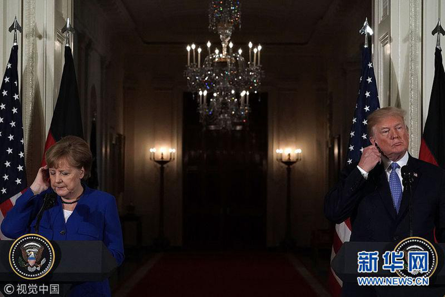 2018年4月27日,美國華盛頓,美國總統(tǒng)特朗普會見德國總理默克爾。(圖片來源:視覺中國)