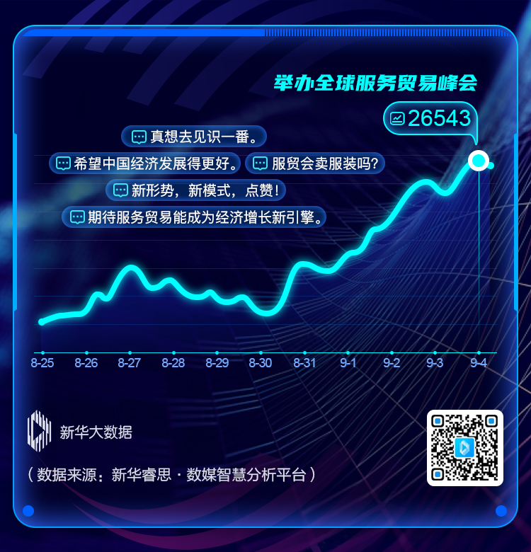 9月4日,2020年中國(guó)國(guó)際服務(wù)貿(mào)易交易會(huì)(簡(jiǎn)稱服貿(mào)會(huì))在北京開幕。作為疫情發(fā)生以來我國(guó)在線下舉辦的第一場(chǎng)重大國(guó)際經(jīng)貿(mào)活動(dòng),服貿(mào)會(huì)受到輿論廣泛關(guān)注,話題信息量不斷增加,網(wǎng)絡(luò)討論熱度更是高達(dá)96.57,位居話題熱度榜首。不少網(wǎng)民表示“真想去見識(shí)一番”“新形勢(shì)、新模式,點(diǎn)贊!”“期待服務(wù)貿(mào)易能成為經(jīng)濟(jì)增長(zhǎng)新引擎”。但面對(duì)鋪天蓋地的服貿(mào)會(huì)相關(guān)信息,也有部分網(wǎng)民表示“疑惑”,“服貿(mào)會(huì)賣服裝嗎?”“服貿(mào)會(huì)上都展出什么服務(wù)呢?”……