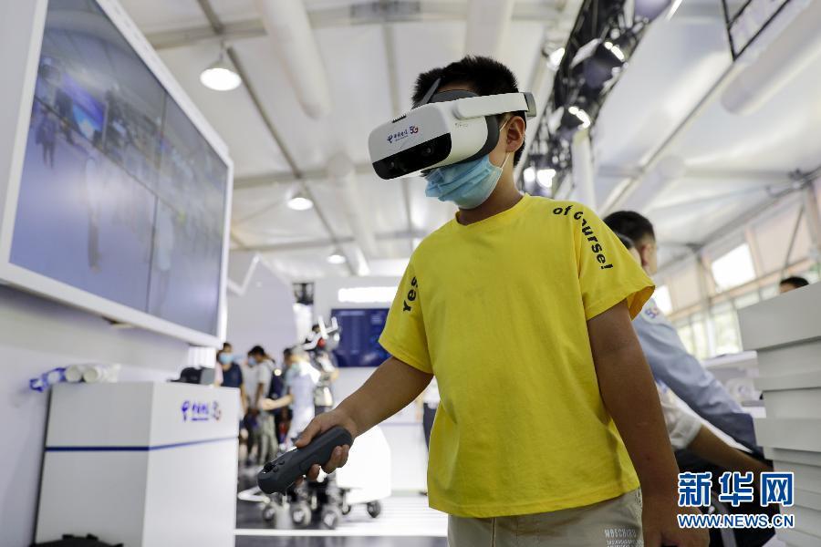 9月5日,一名小朋友在服貿(mào)會5G通信服務(wù)專題專區(qū)體驗(yàn)VR游戲。新華社記者 李木子 攝