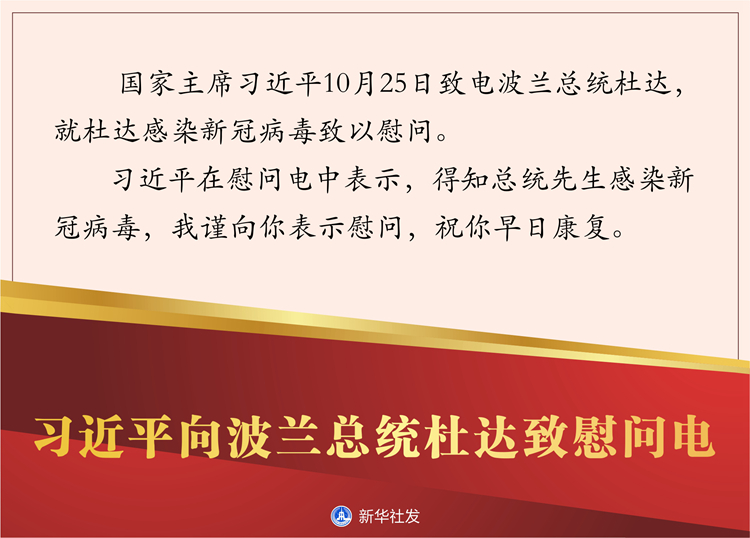 新華社北京10月25日電? 國家主席習(xí)近平10月25日致電波蘭總統(tǒng)杜達(dá),就杜達(dá)感染新冠病毒致以慰問。