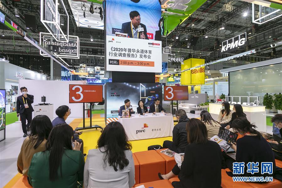 11月5日,普華永道在第三屆進(jìn)博會服務(wù)貿(mào)易展區(qū)現(xiàn)場直播《2020年普華永道體育行業(yè)調(diào)查報告》發(fā)布會。新華社記者 王翔 攝