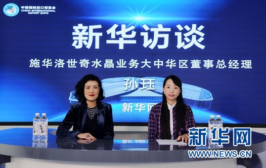 施華洛世奇水晶業(yè)務(wù)大中華區(qū)董事總經(jīng)理孫玨(左)接受新華網(wǎng)“外企共話新格局”系列訪談專(zhuān)訪。新華網(wǎng) 發(fā)