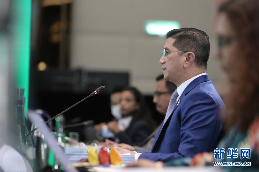 11月16日,在馬來西亞吉隆坡,馬來西亞國(guó)際貿(mào)易和工業(yè)部部長(zhǎng)阿茲明·阿里在亞太經(jīng)濟(jì)合作組織部長(zhǎng)會(huì)議上講話。新華社發(fā)(亞太經(jīng)合組織供圖)